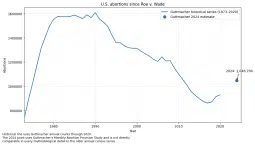 1,038,100 Guttmacher Institute: estimated 1,038,100 clinician-provided abortions in 2024 in states without total bans. Guttmacher also notes this is still.