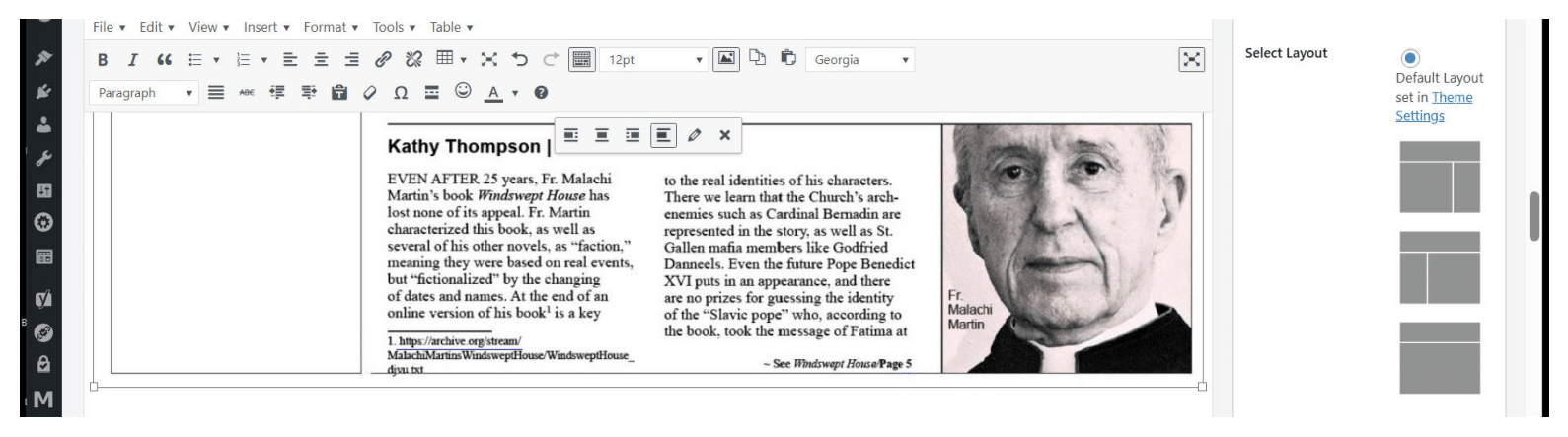 One anti-Vatican Two newspaper said, “Even after 25 years, Father Malachi Martin’s book Windswept House has lost none of its appeal. Fr. Martin characterized this book, as well as several of his other novels, as “faction,” meaning they were based on real events, but “fictionalized” by the changing of dates and names. At the end of an online version of his book is a key to the real identities of his characters. There we learn that the Church’s arch-enemies such as Cardinal Bernardin are represented in the story, as well as St. Gallen mafia members like Godfried Danneels.”