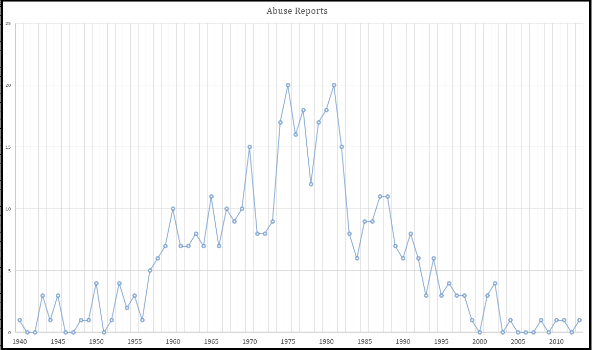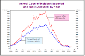 It showed an increase starting around 1955, a peak between 1975 and 1980, which then fell to pre-1955 levels in 1995. That was the scope of the abuse crisis back in 2002.