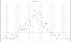 Both datasets show that 1960-1990 (a full generation!!!) was a terrible time to be a Catholic child. And the period from 1970-1985 was worst of all.