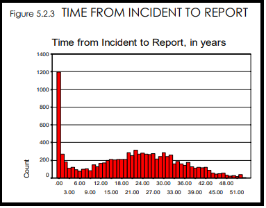 This is where the John Jay report has some light to shed. It catalogues how long victims take to report their abuse. Here is the chart: